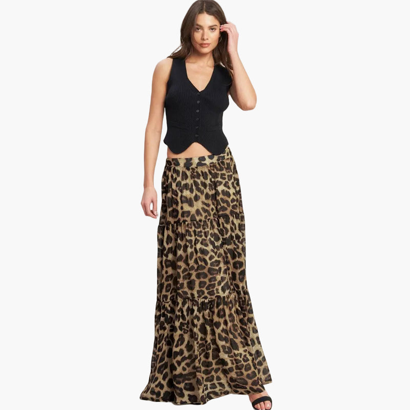 Leopard Print Woven Maxi Skirt