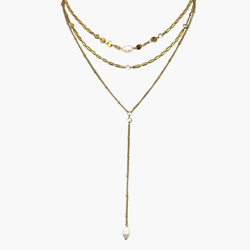 Freshwater Pearl 18K Gold Plated Triple Layer Lariat Necklace
