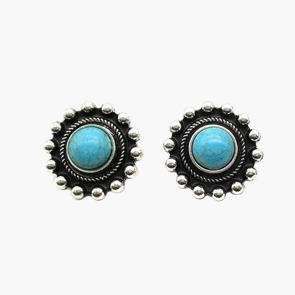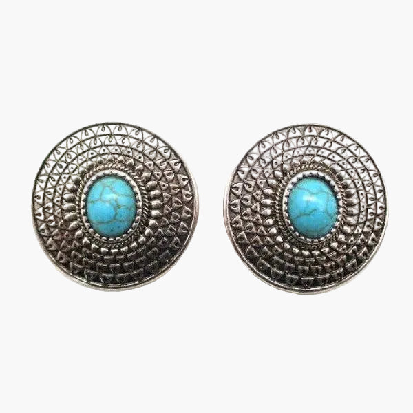 Western Concho Turquoise Stone Stud Earings