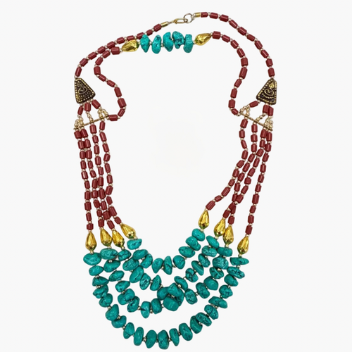 Turquoise Teardrop Stone Navajo Multi Bead Necklace
