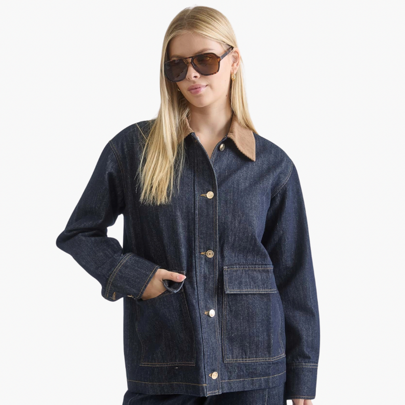 Corduroy Collar Pocket Detail Denim Jacket