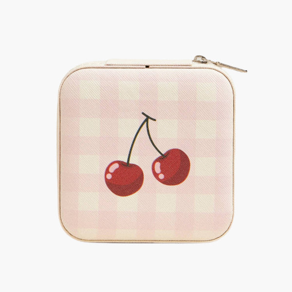 Cherry and Checker Pattern Jewelry Box -Travel Size