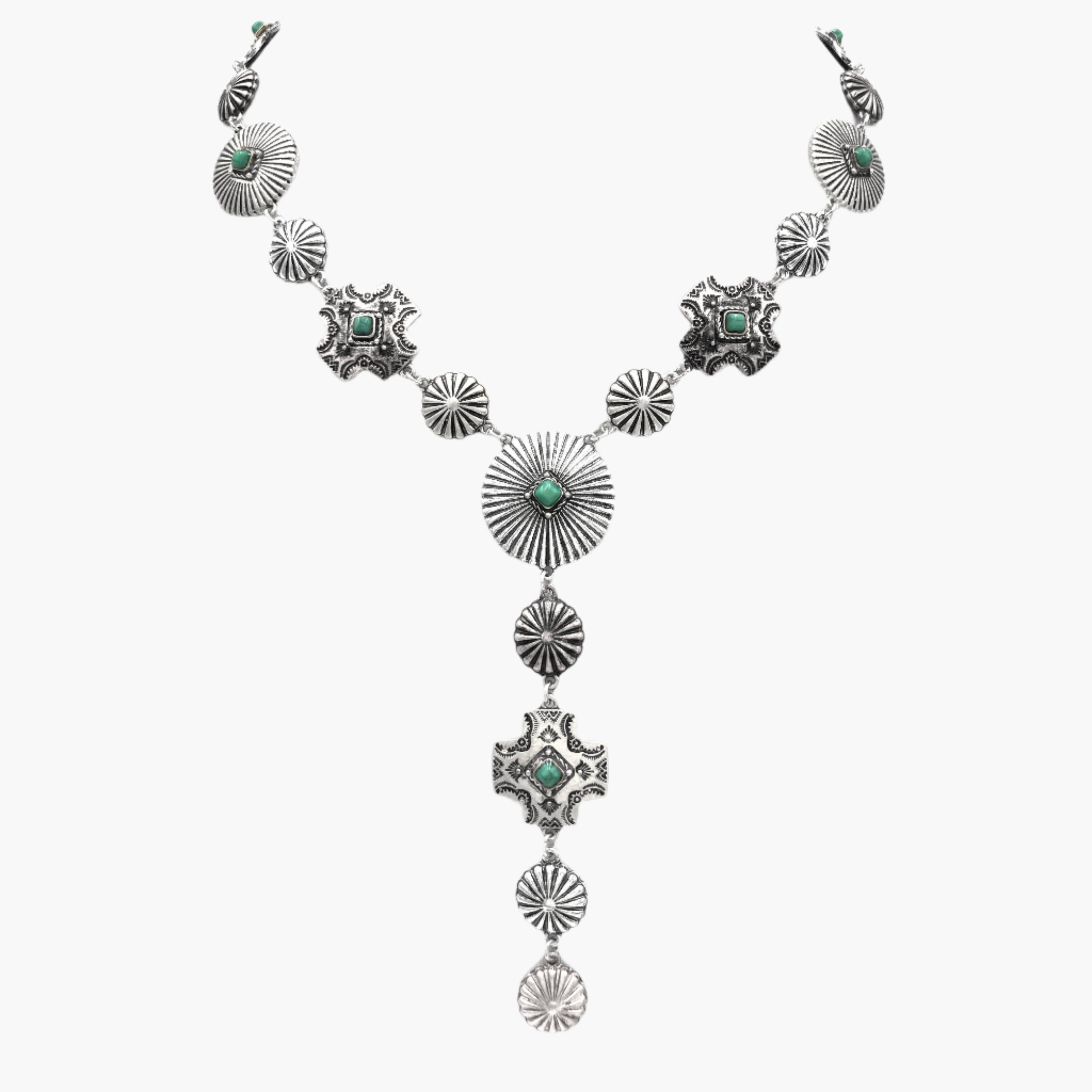 This necklace is perfect for those who want to add a touch of western and native style to their wardrobe. The western cross symbolizes faith and religion, while the native concho designs add a touch of cultural and traditional elegance. The Y-shape design adds a touch of boldness and uniqueness to the necklace. It's perfect for casual and formal occasions and a great gift idea.