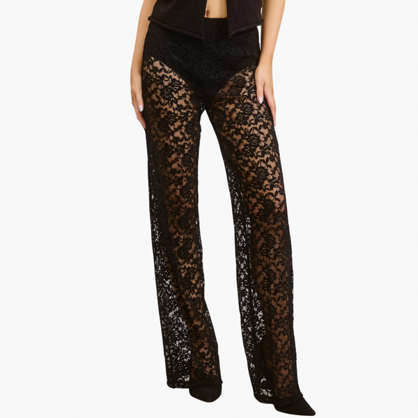 Black High Waist Sheer Lace Trousers