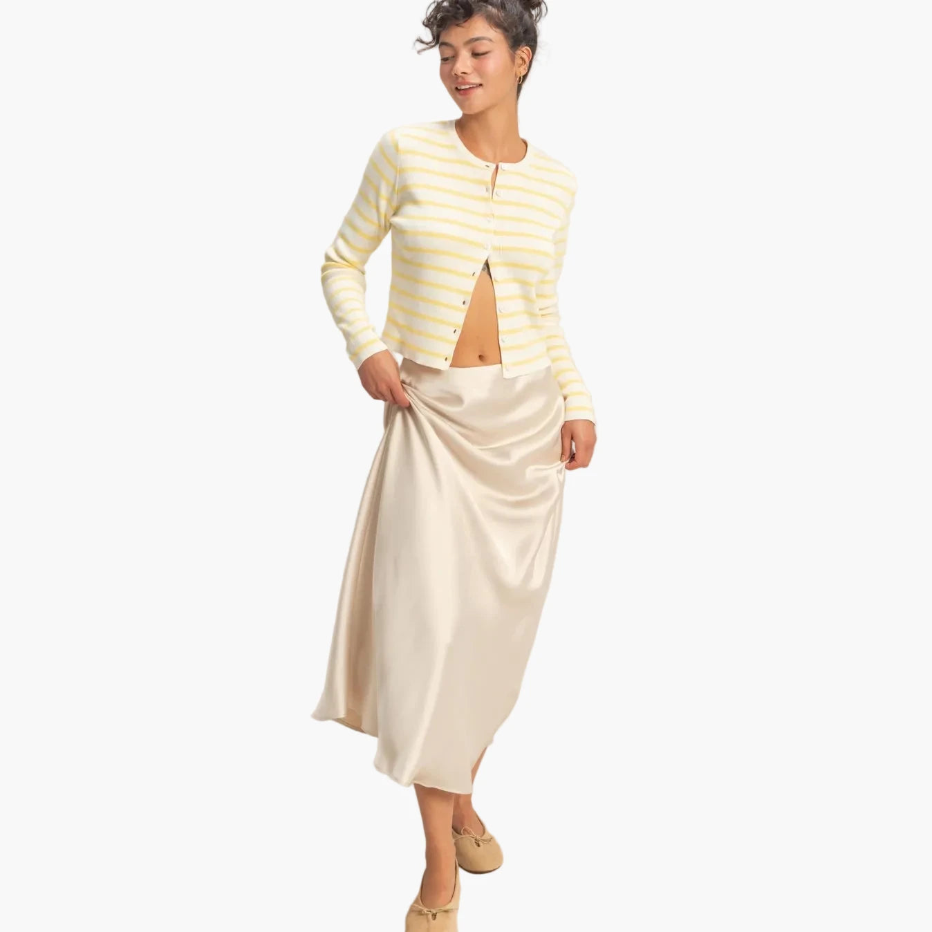 Cream Satin Maxi Skirt