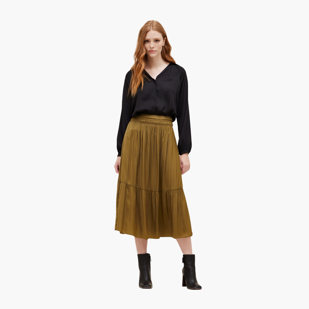 Black Collared Satin Button Down Blouse