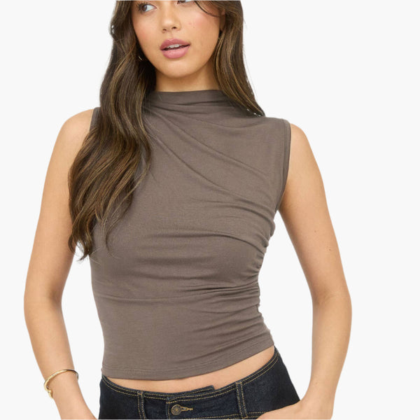 Brown Scarf-Detail Asymmetric Sleeveless Top