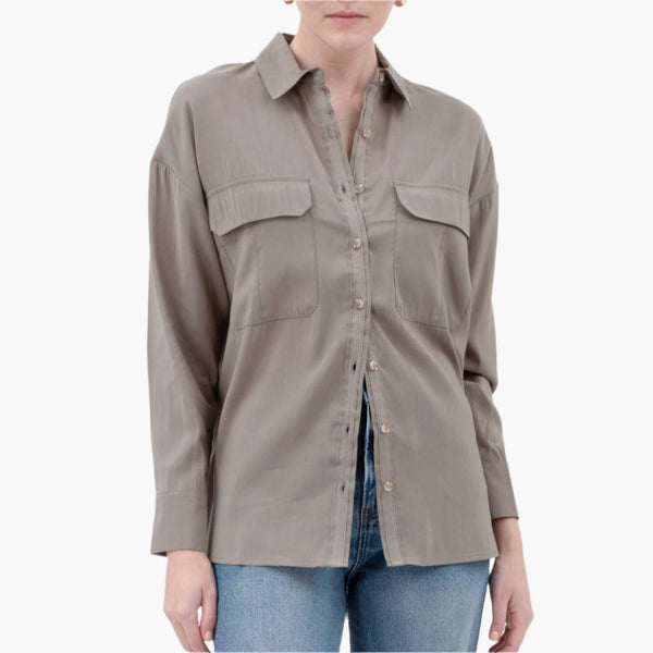 Floral-Print Satin V-Neck Buttoned Ruffle-Cuff Top