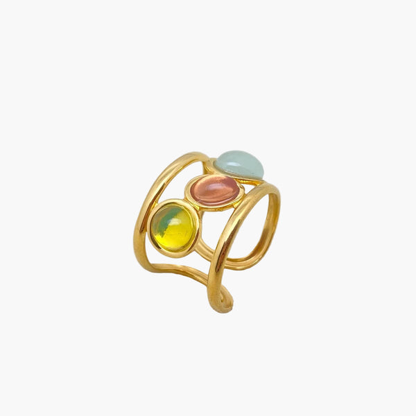 3 Color Gemstone 18K Gold Plated SS Adjustable Ring