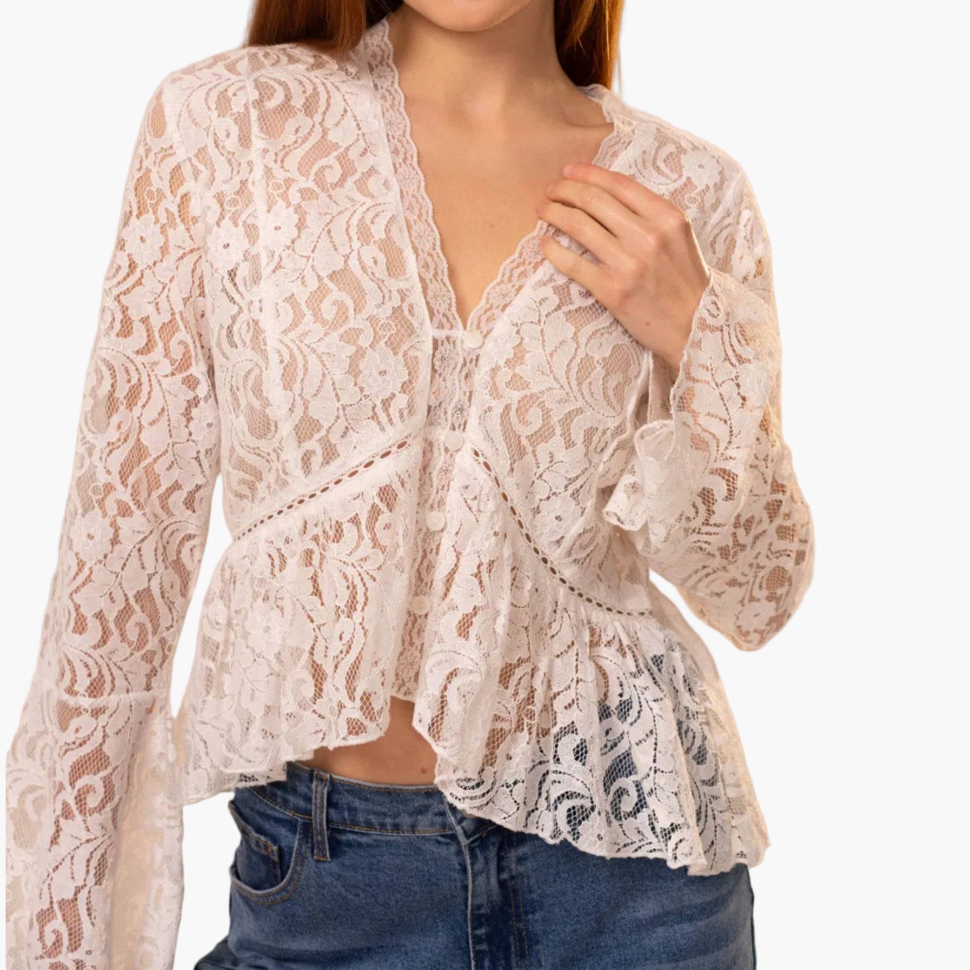 Lace Bell Sleeve Blouse