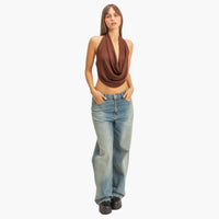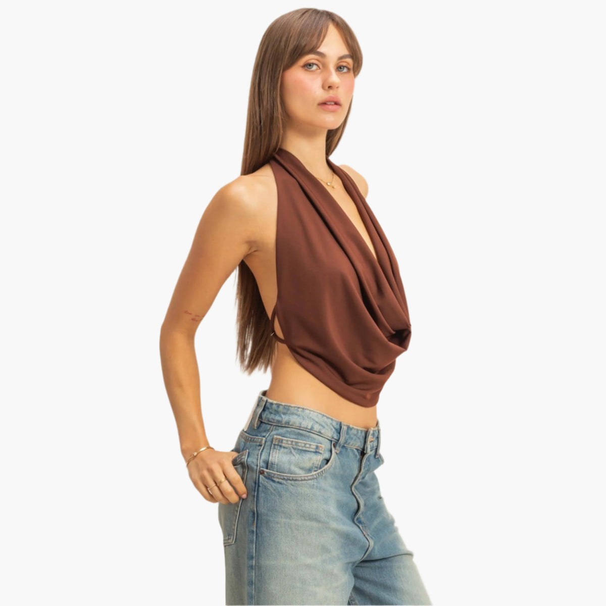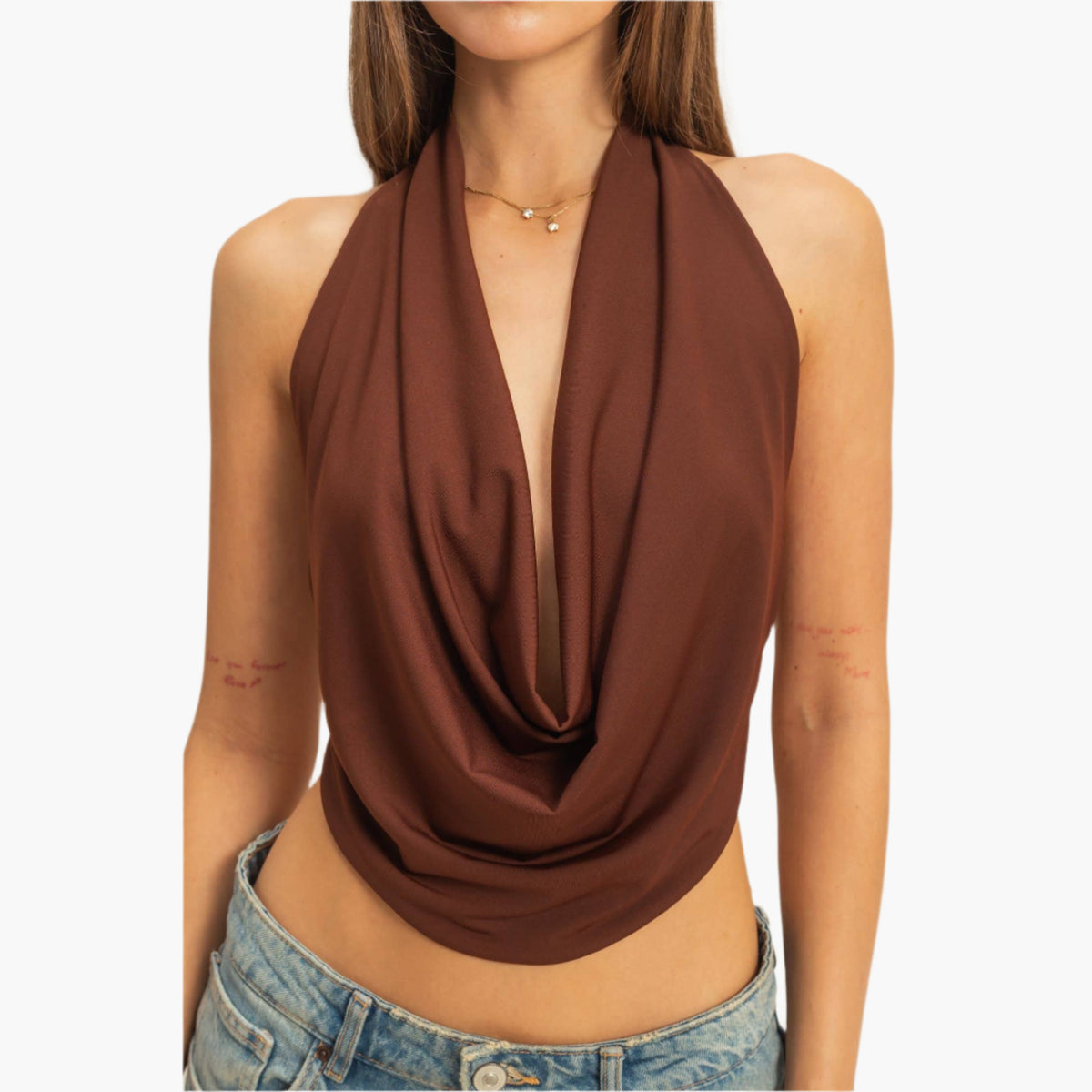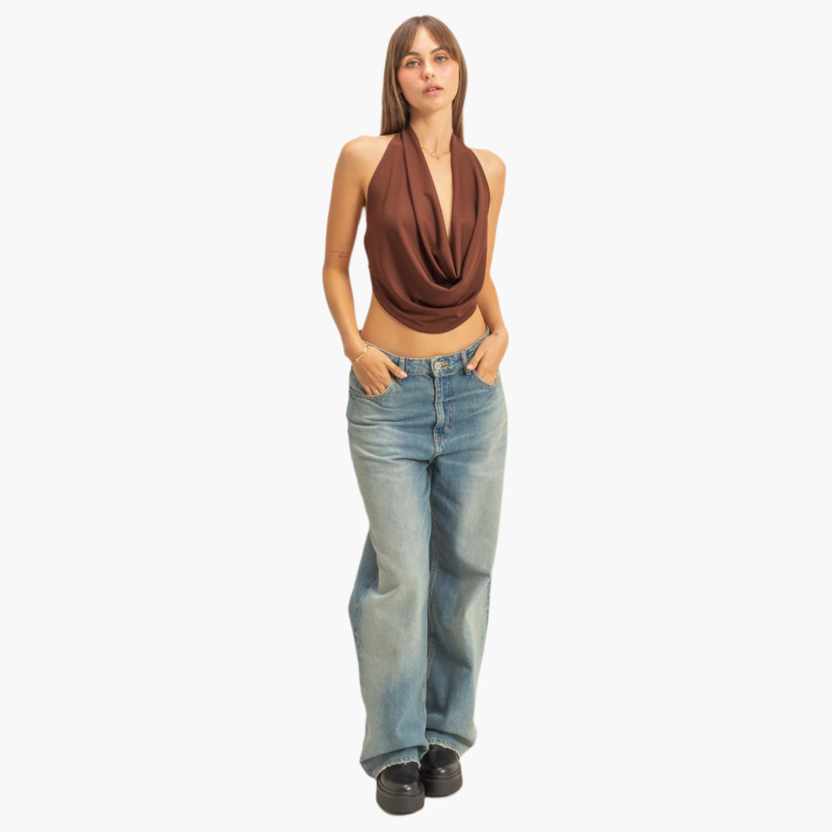 Elevate Your Wardrobe With This Stunning Ensemble, Combining Effortless Sophistication And Contemporary Charm. The Draped Halter Top, With Its Fluid Silhouette And Elegant Drape, Offers A Flattering Design That Accentuates The Neckline Beautifully.