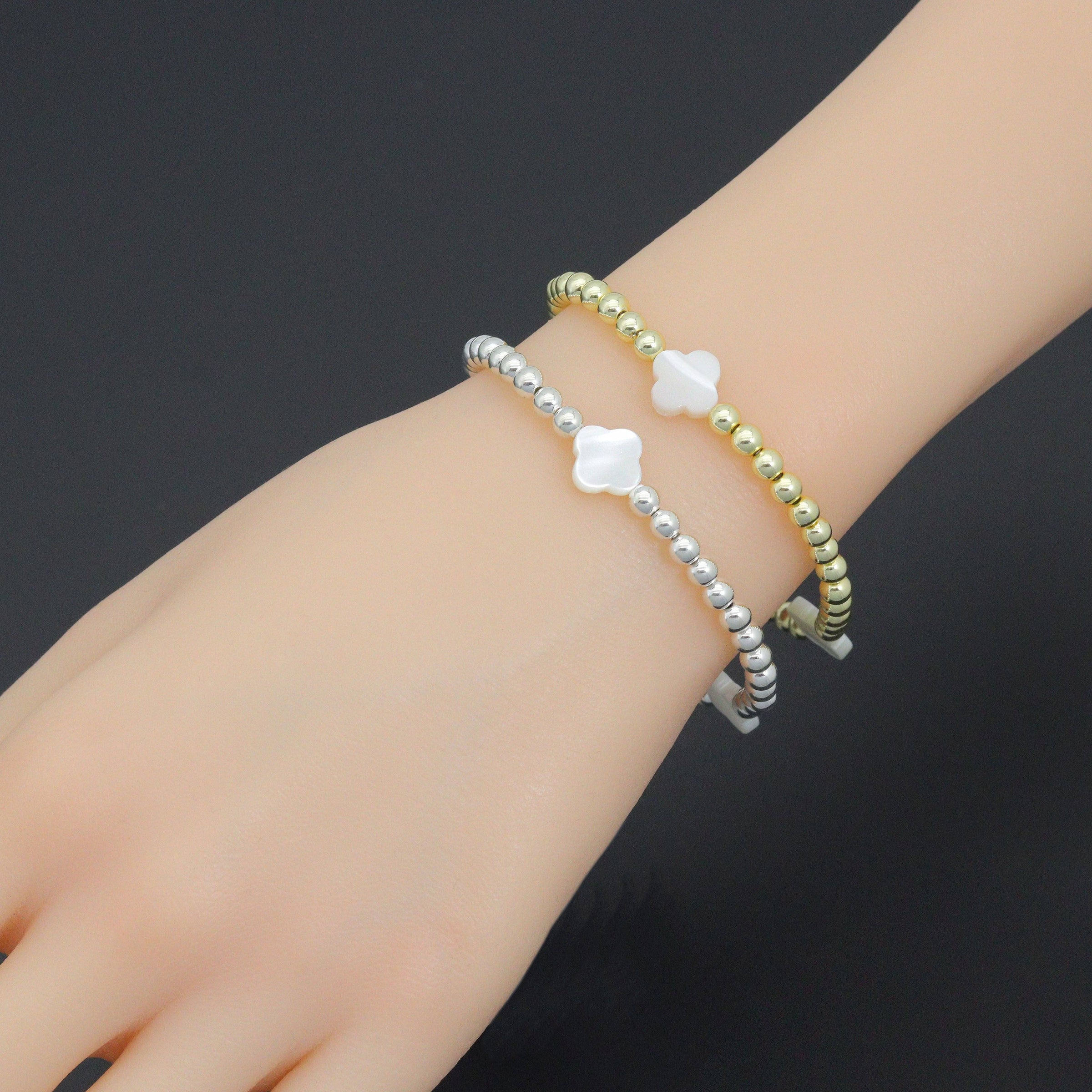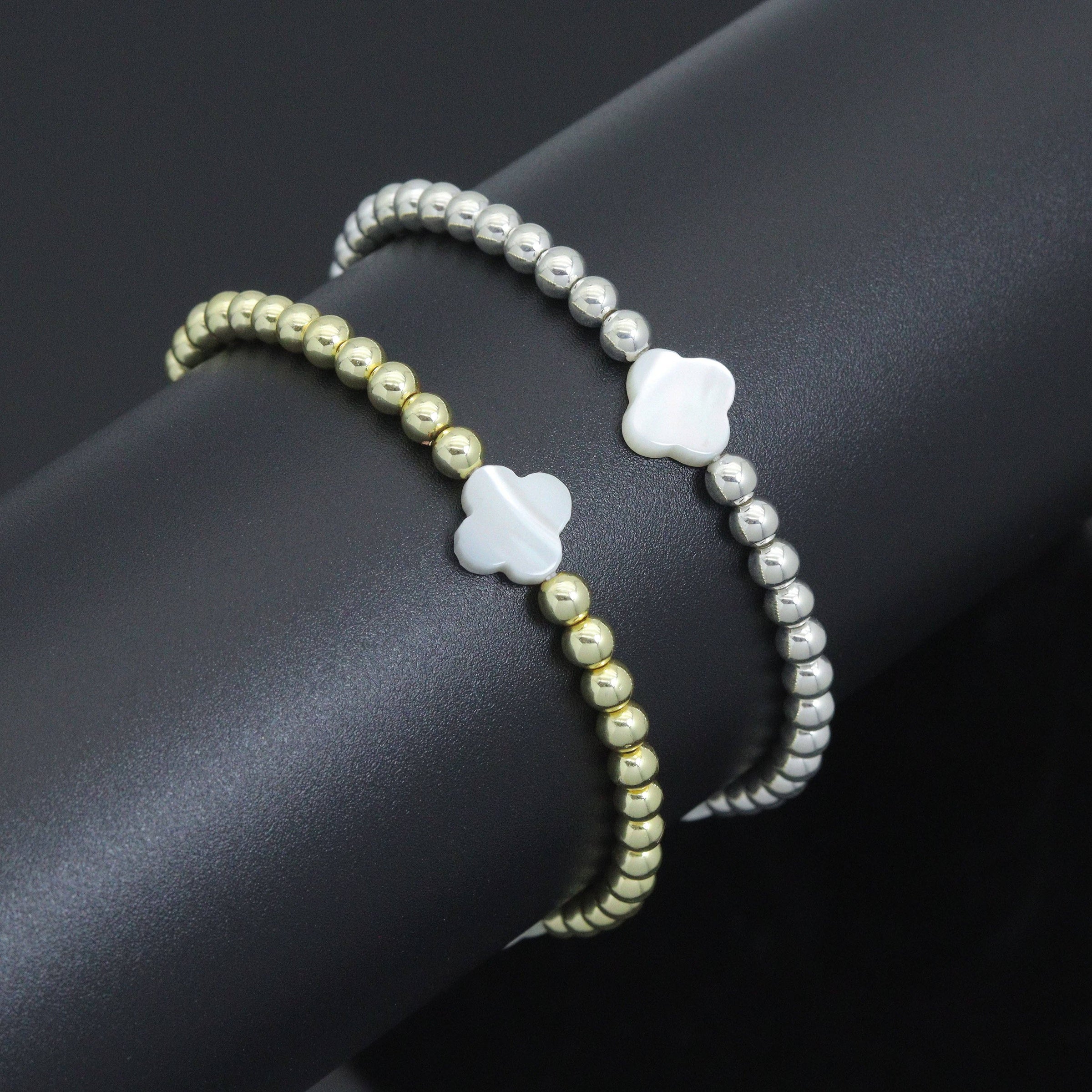 Hematite with Mother of Pearl Clover Stretchy Bracelet