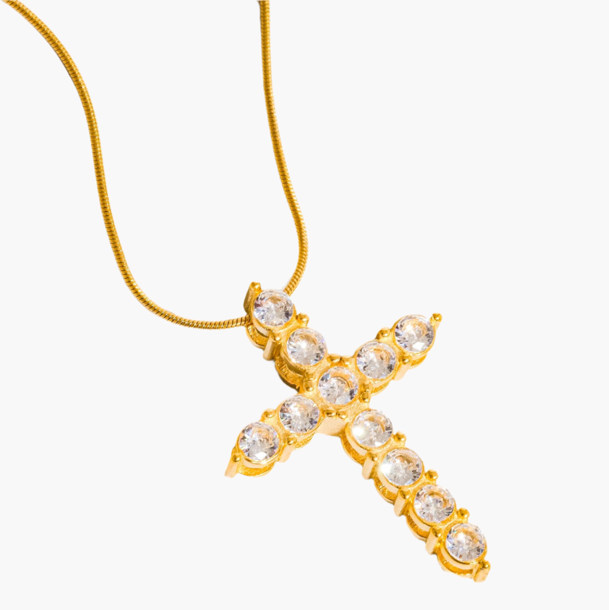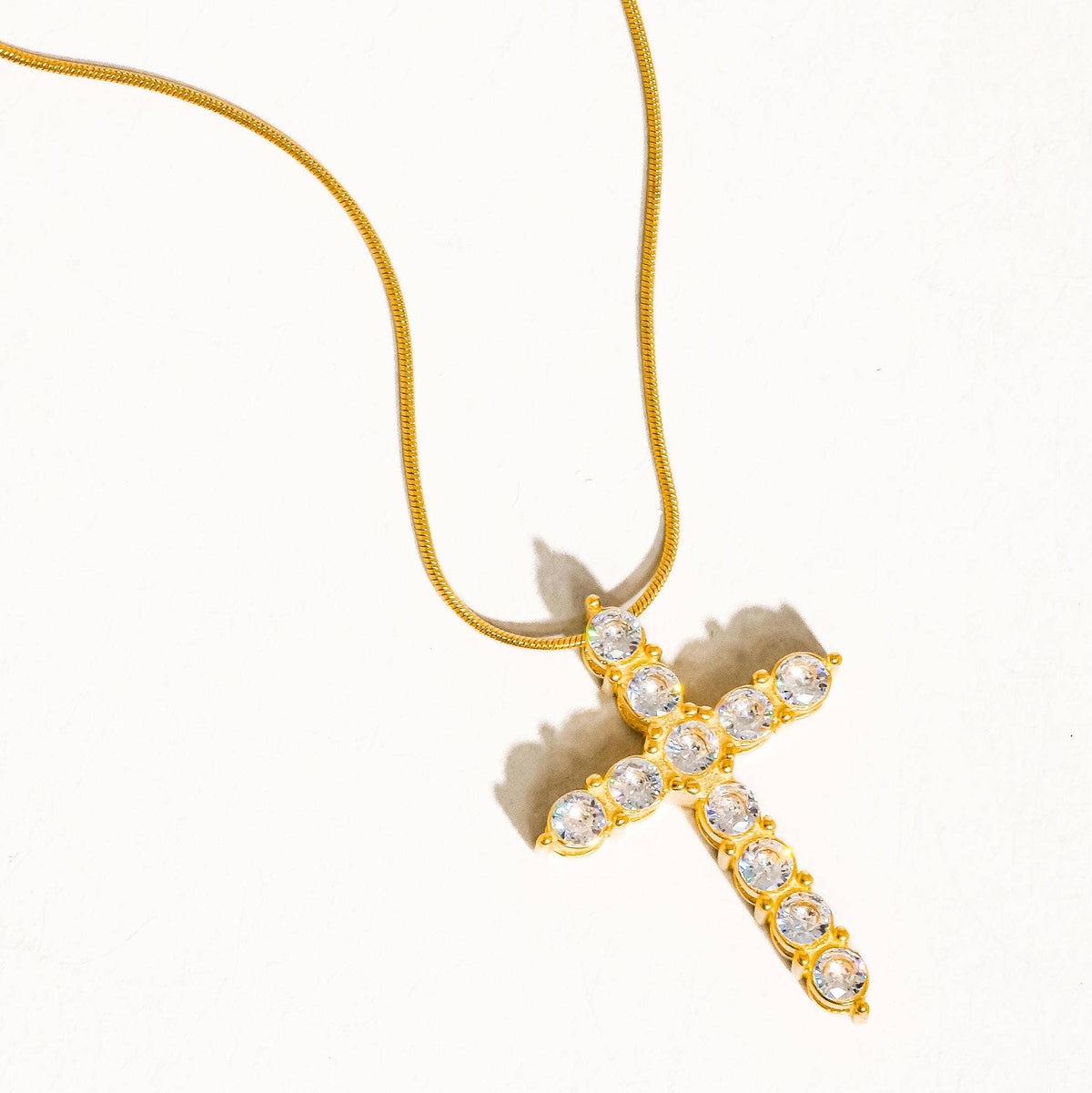 Raeven 18K Gold Non-Tarnish CZ Cross Necklace